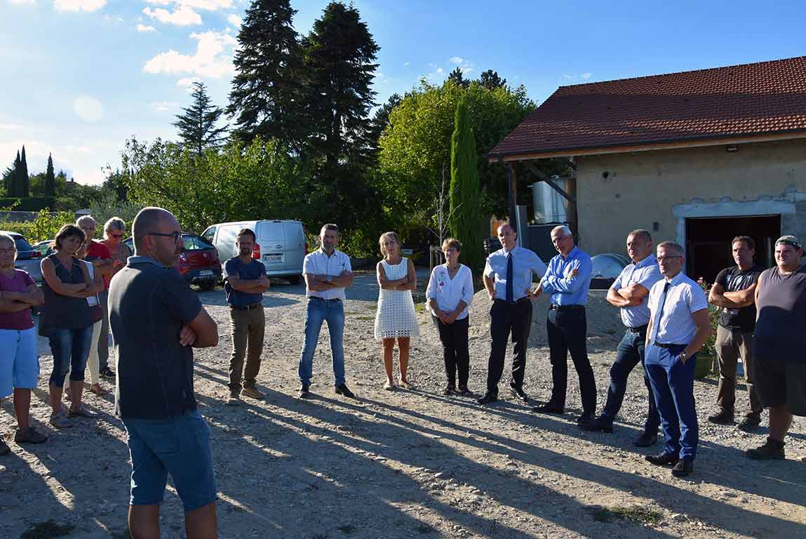 Une trentaine d’agriculteurs de la vallée du Garon a répondu à l’appel de la Chambre d’agriculture du Rhône et de son président, Pascal Girin. Etaient également présents Benoît Rochas, le sous-préfet en charge du Rhône Sud, Jean-Luc Fugit, député de la 11e circonscription du Rhône, Françoise Gauquelin, présidente de la CCVG et maire de Millery, ainsi que Catherine Staron, vice-présidente de la Région Auvergne Rhône Alpes et maire de Vourles.