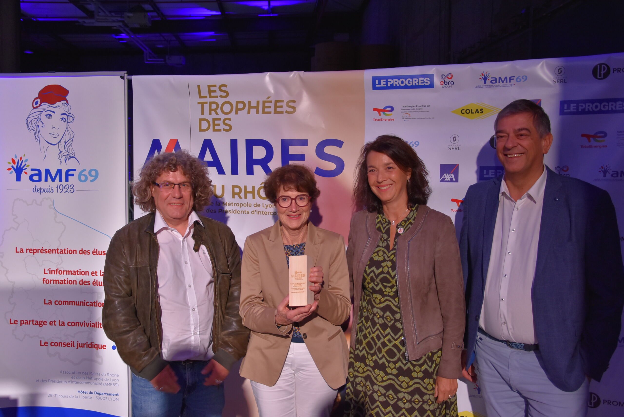En compagnie de Guy Boisserin, vice-président chargé des bâtiments communautaires, et de Jérôme Crozet, conseiller communautaire délégué à l’agriculture, Françoise Gauquelin, présidente de la CCVG, s’est vue remettre le Trophée par Valérie Laugier, présidente de TotalEnergies Proxy Sud-Est.