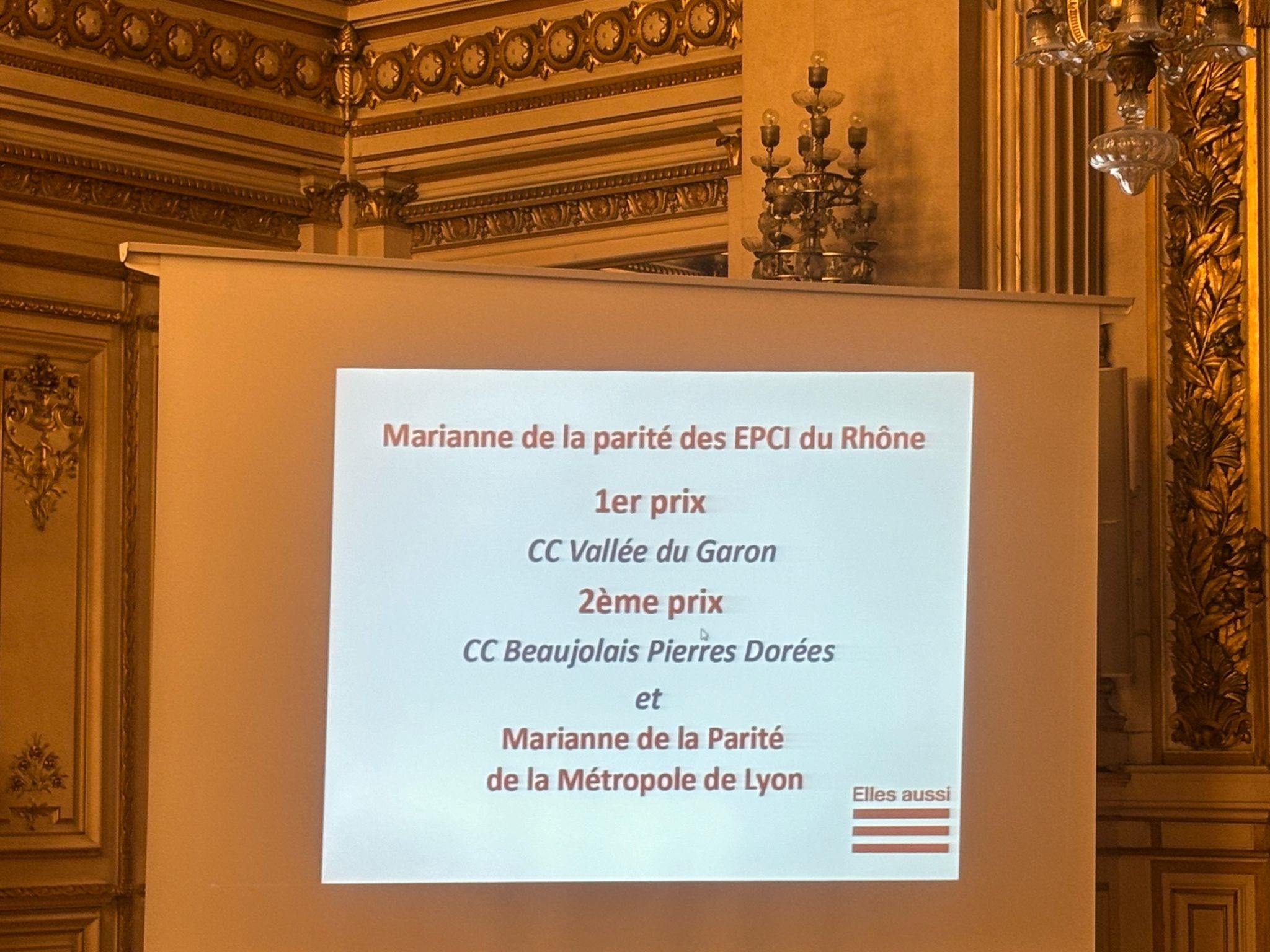 Le 2 février, dans les salons de la Préfecture, Françoise GAUQUELIN, présidente de la CCVG, s’est vue remettre par Mme Vanina NICOLI, Préfète déléguée pour l’égalité des chances, le premier prix des Mariannes de la parité 2022-2023 dans le Rhône.